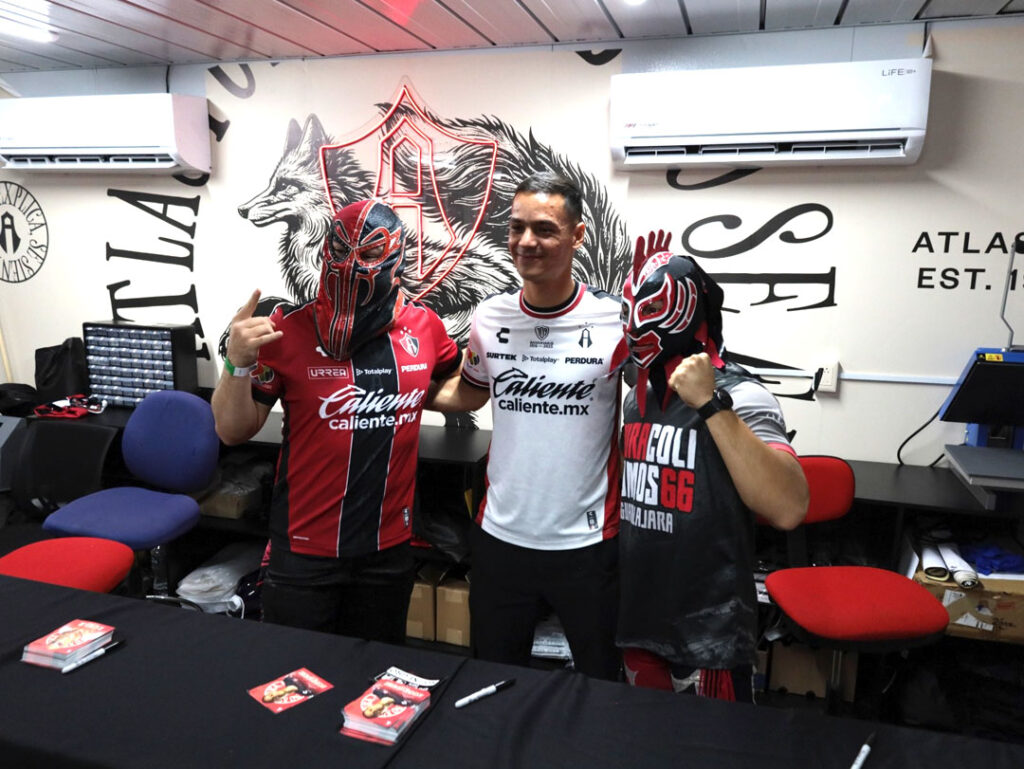 Previo al compromiso de la jornada 14 del torneo de Apertura 2025 de la Liga BBVA MX, los luchadores del Consejo Mundial de Lucha Libre y la Arena Coliseo de Guadalajara, Gallo junior y Ráfaga junior, acudieron al llamado de los Rojinegros del Atlas, para ser parte de una firma de autógrafos en el monumental Estadio Jalisco.